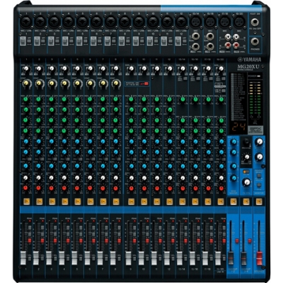 20通道调音台:最多16个话筒 / 20 个线路输入 (12 个单声道 + 4 个立体声) / 4 编组母线 + 1 立体声母线 / 4 AUX (包括 FX)